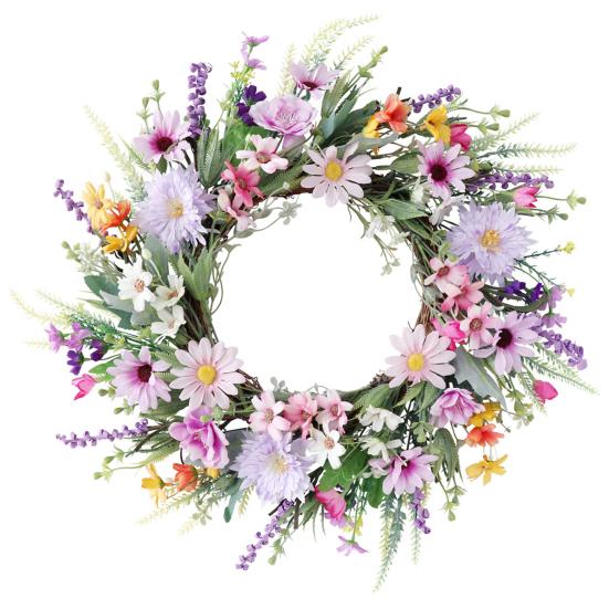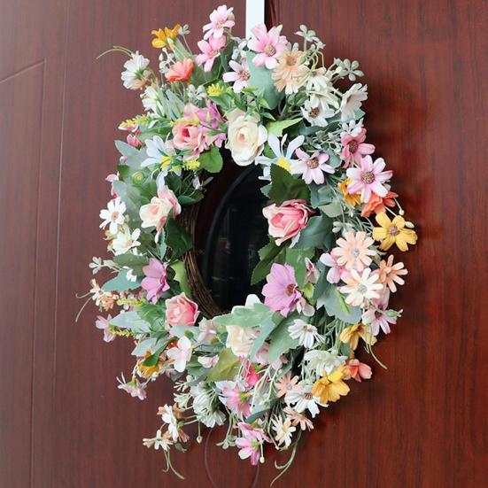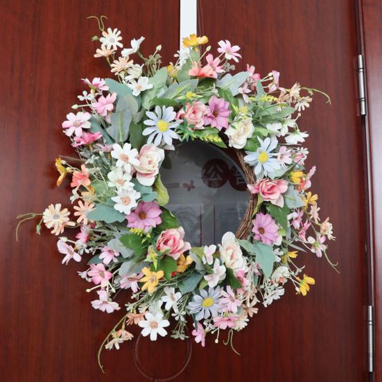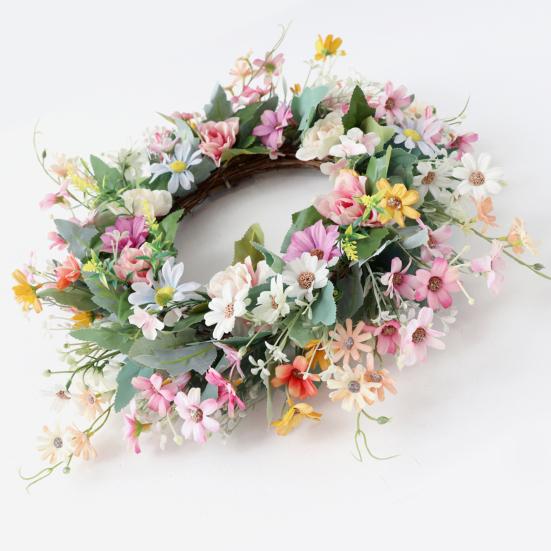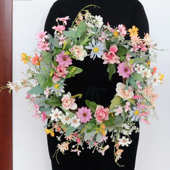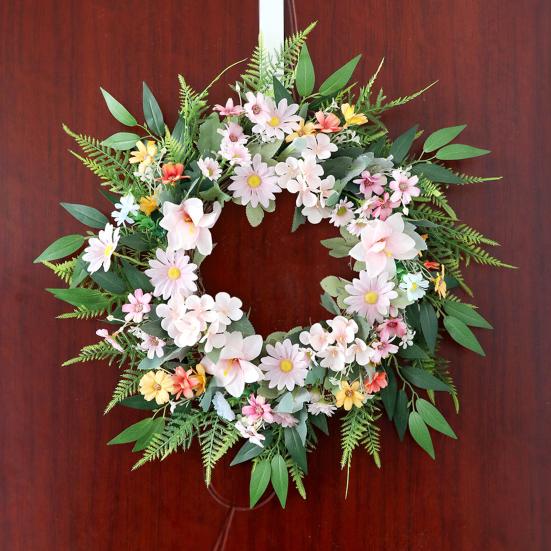 Этот венок из искусственных цветов не требует ухода, экономит ваше время и силы, сохраняя свою красоту круглый год.. Универсальный и легко адаптируемый, он может украсить любое пространство, будь то входная дверь, стена, окно, ферма, цветочный магазин или место проведения свадьбы.. Почувствуйте красоту весны с этим очаровательным цветочным украшением.