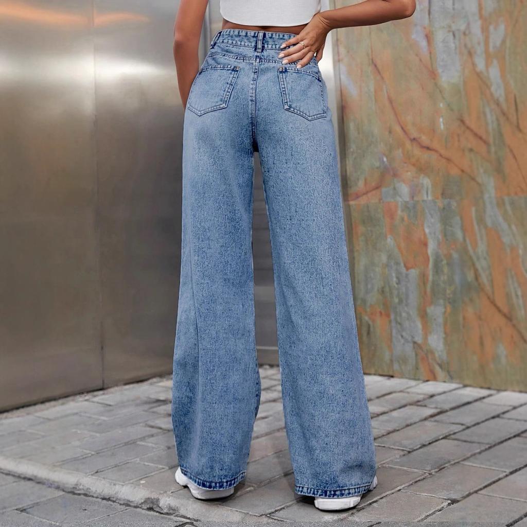 Женские модные брюки с высокой талией и широкими штанинами, повседневные джинсы