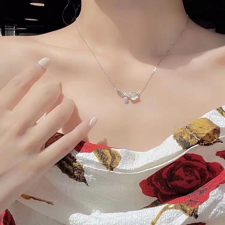 Новая тенденция моды уникальный дизайн элегантный нежный халцедон тюльпан кулон ожерелье женщины высокое ювелирные изделия вечеринка подарки оптом