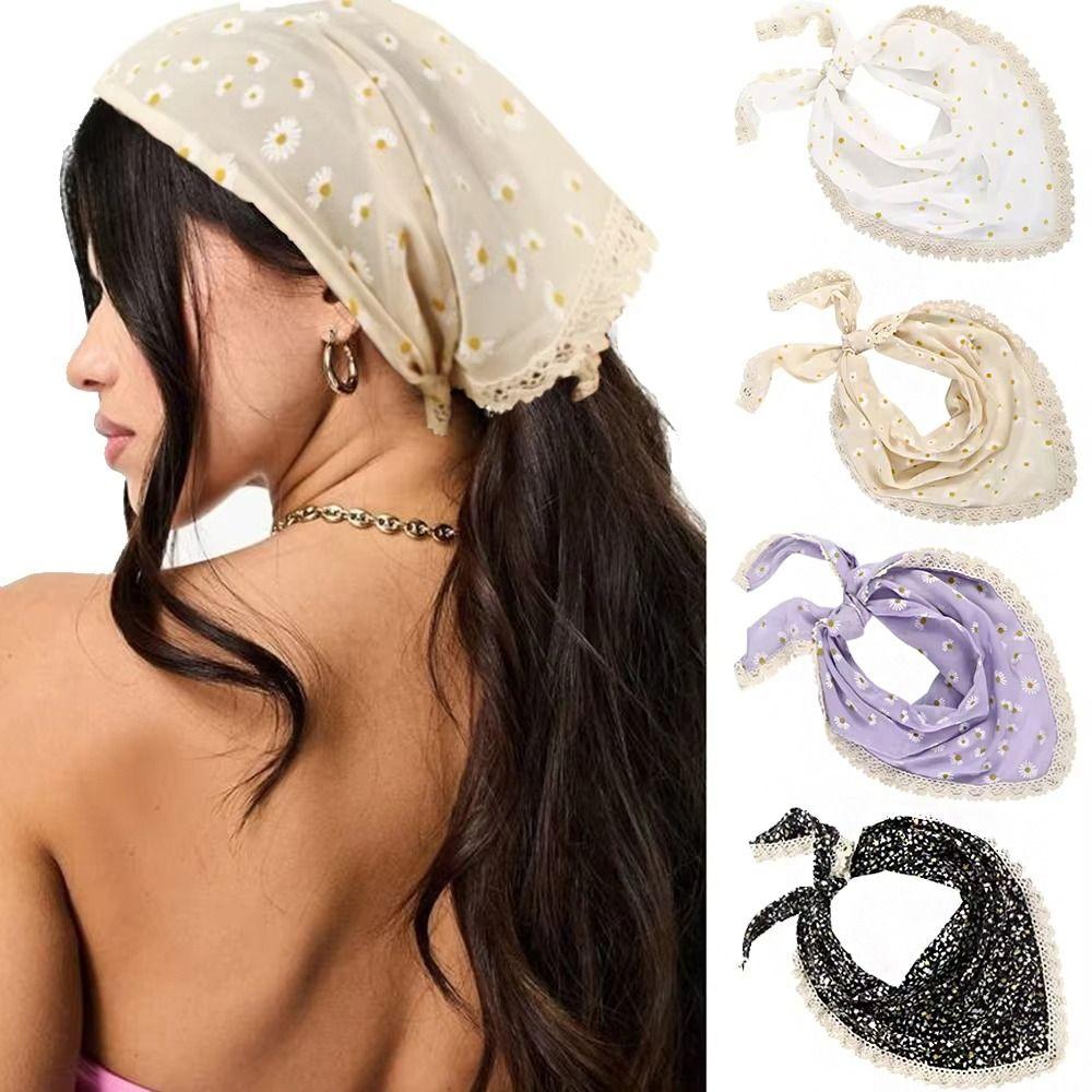 Тюрбан, маленький цветочный треугольник, бандана, напечатанный цветок, треугольная повязка на голову, кружевной шарф для волос, вид на море