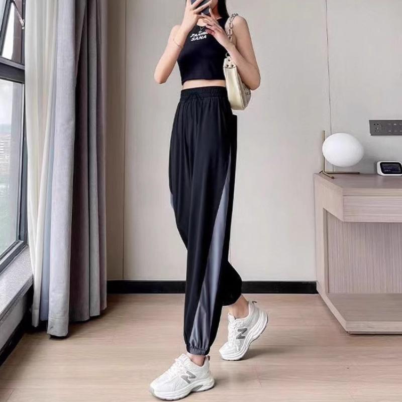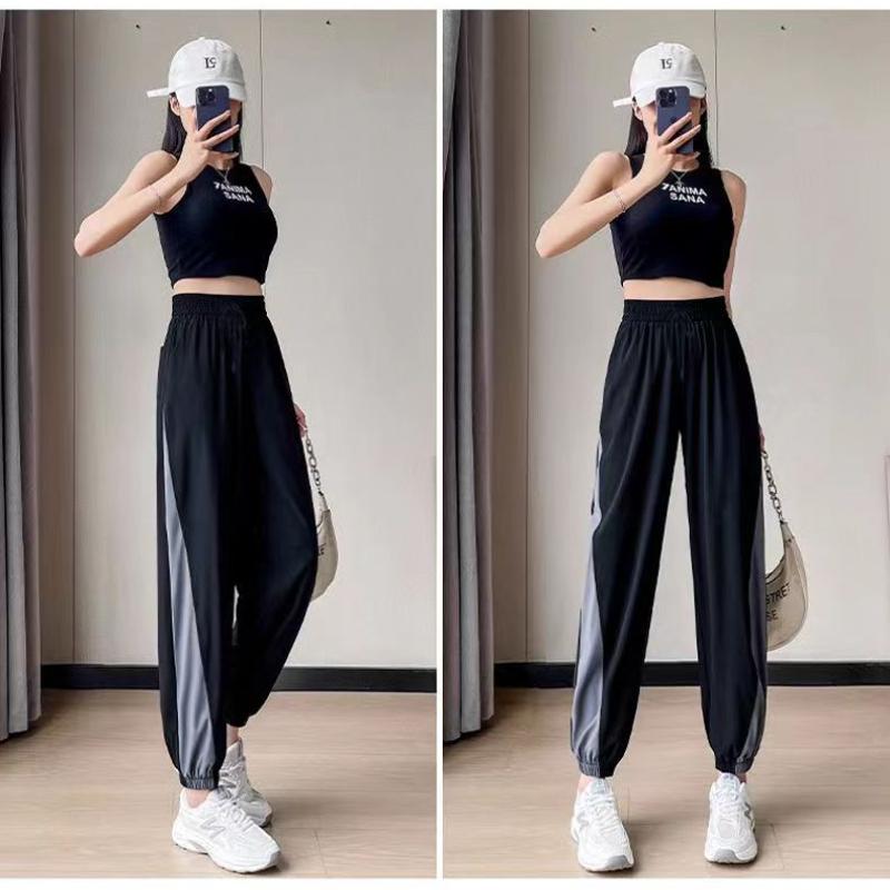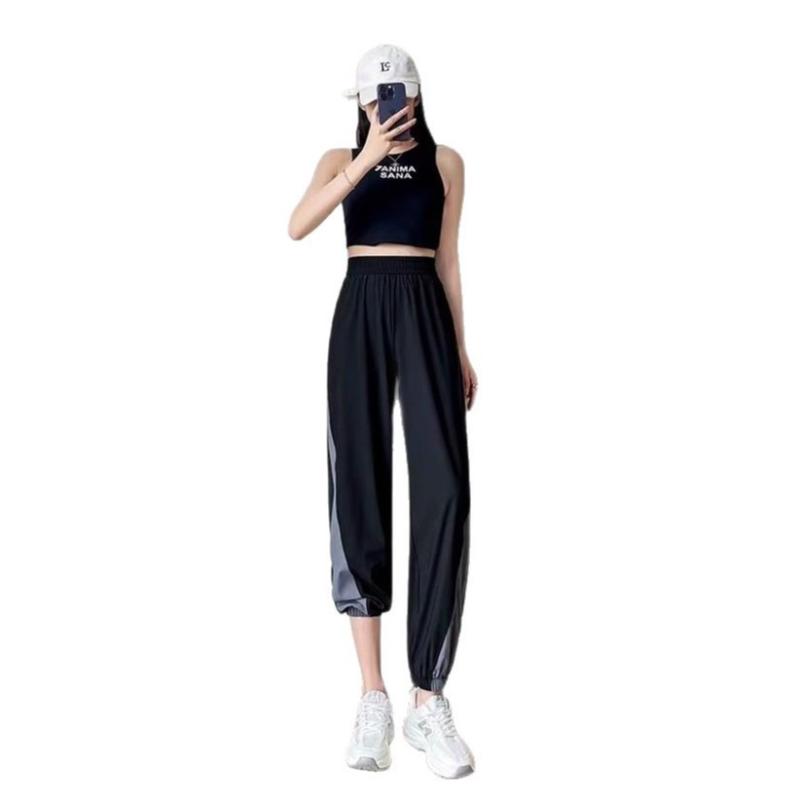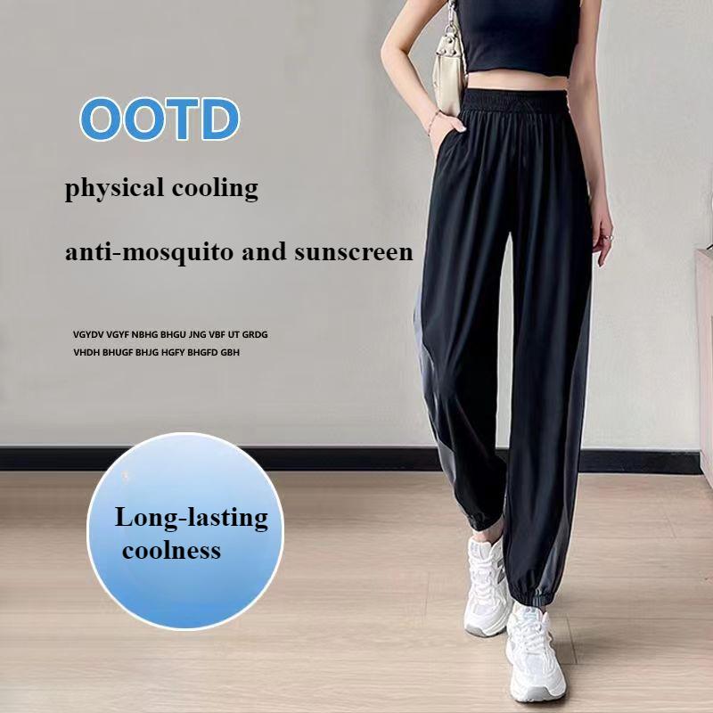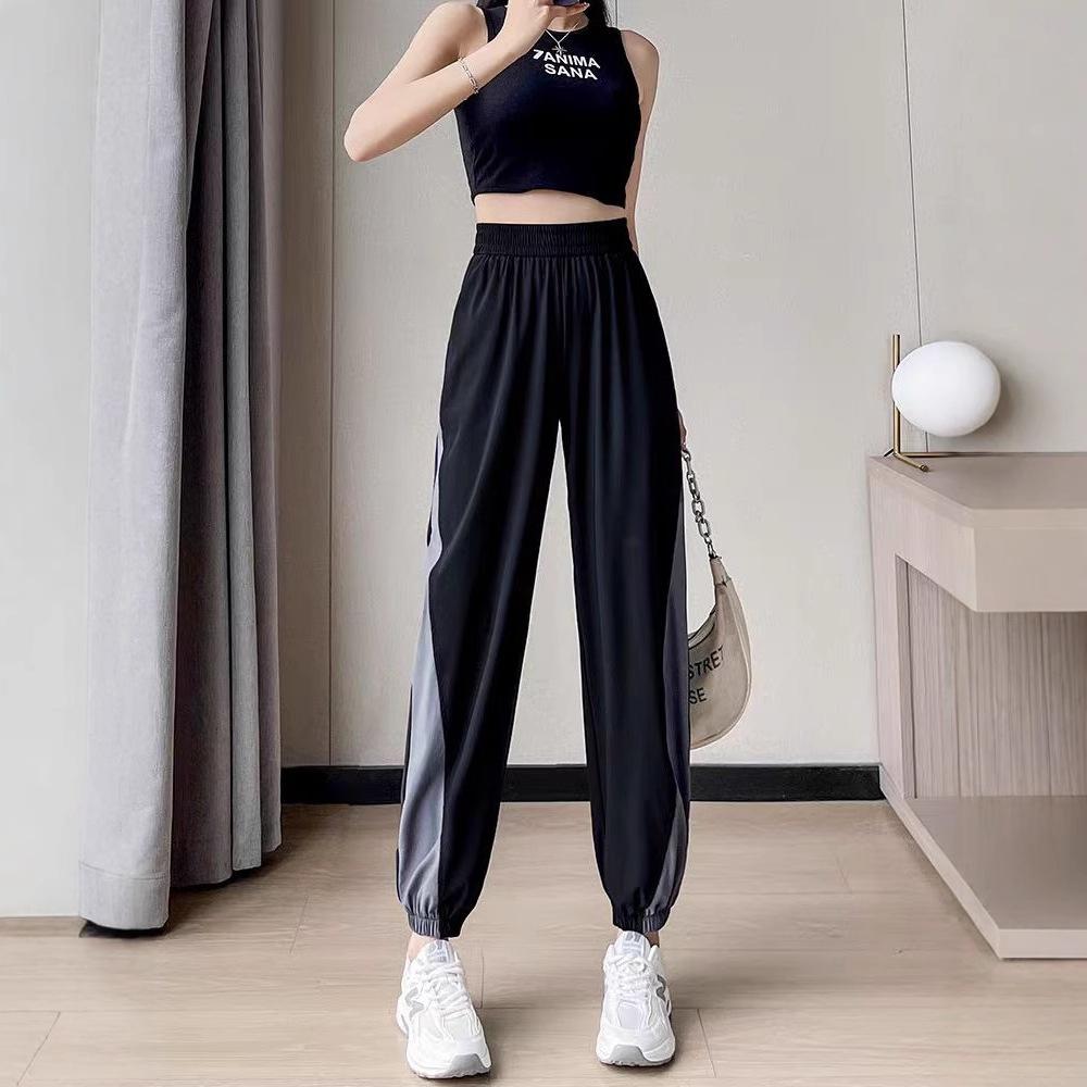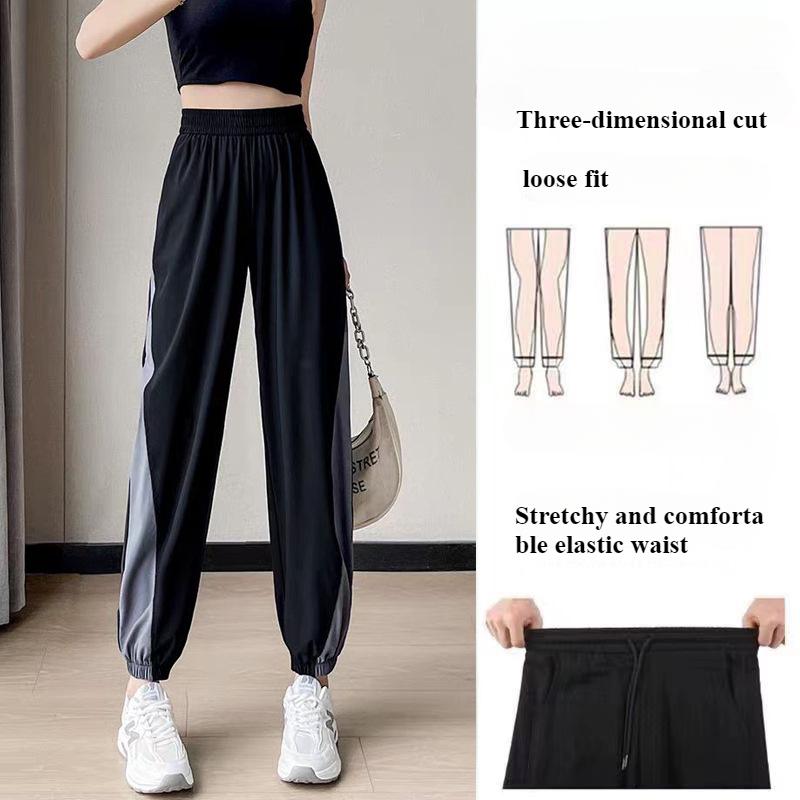 Дышащие свободные брюки для фитнеса из ледяного шелка для женщин, летние брюки для бега и тренировок, тонкие быстросохнущие повседневные утягивающие брюки с высокой талией
