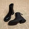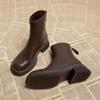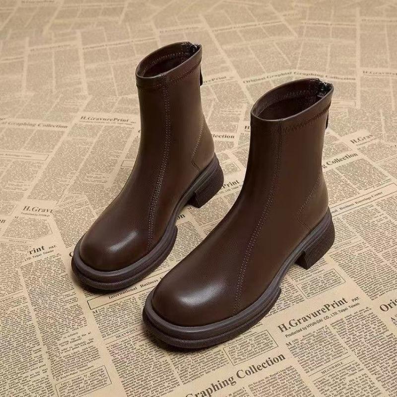 Женская обувь Лаконичные современные женские ботинки Классические ботильоны Женские с круглым носком Средний каблук Застежка-молния Сшитые на молнии Уличная обувь Женская