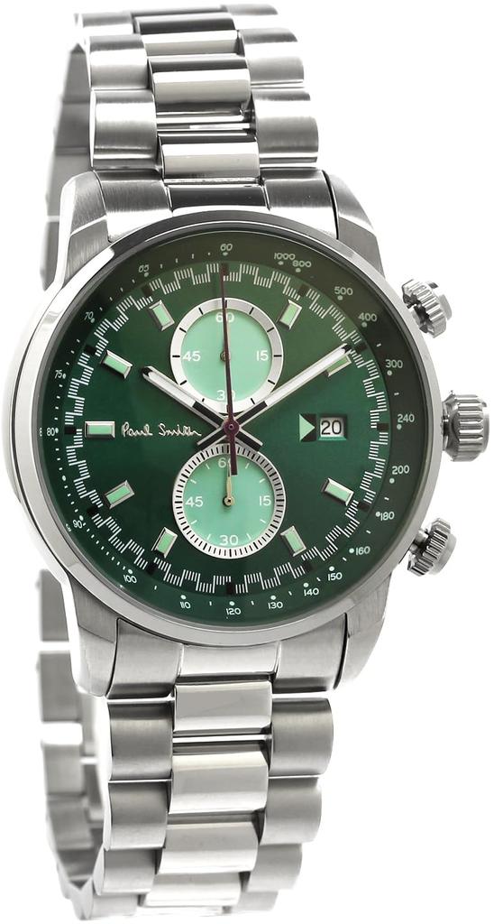 PAUL SMITH Paul Smith Часы Block Block Chrono Металлический ремешок P10038 Мужские Зеленый/Серебристый