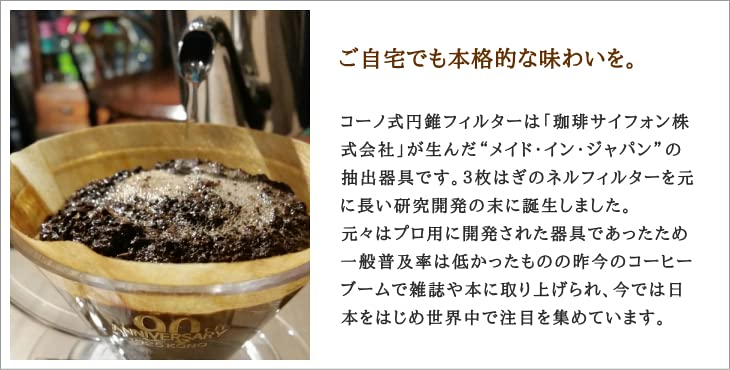 Стиль Коно — это простой стиль, который подчеркивает вкус кофе, не меняя его со времен прошлого.. Причина в восхитительном коническом кофейном фильтре.. Метод центральной экстракции позволяет извлекать восхитительный кофе с еще более насыщенным вкусом и ароматом.. Поскольку он сочетает в себе преимущества фланелевой капельницы, которая считается идеальной для экстракции кофе, его также используют в качестве коммерческого оборудования профессионалы в кофейнях и других местах.