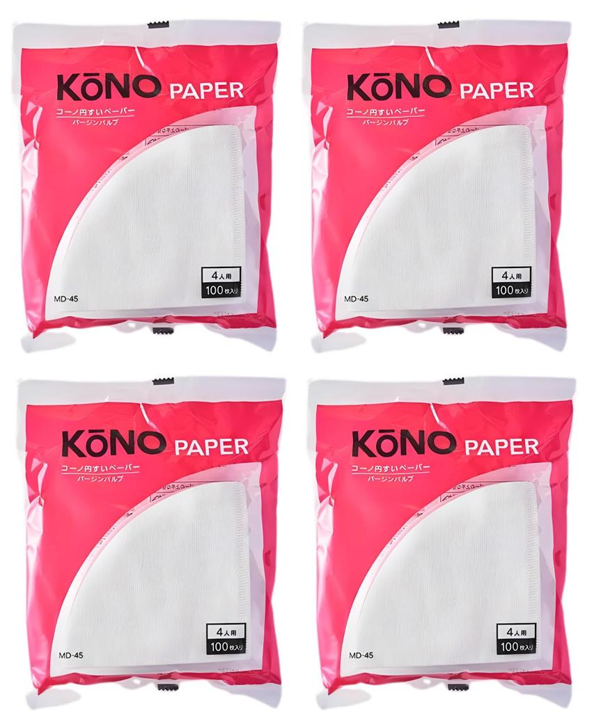 Фильтровальная бумага для кофе KONO 400 листов для дриппера 4 пакета по 100 шт MD-45 [Комплект листов]