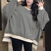 Корейская полосатая футболка с длинными рукавами и круглым вырезом для женщин на весну и осень, тонкий новый стиль с ленивым свободным универсальным топом