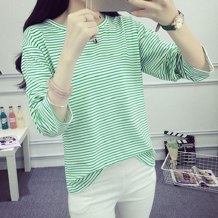 Весна и осень, новая корейская версия, простой полосатый топ, свободная футболка с длинными рукавами, женская школьная универсальная базовая рубашка для студентов — купить товар онлайн с бесплатной доставкой по всему миру!