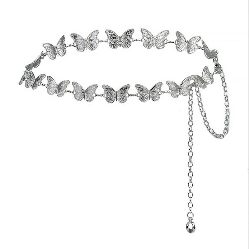 Металлические цепочки-бабочки для женщин, серебряные, этнические, длинные, тонкие, на талию, корейские женские аксессуары для платьев и юбок Y2K