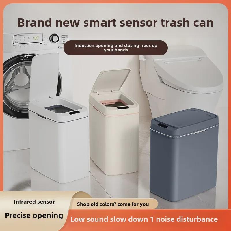Бесконтактный автоматический умный мусорный бак с тонким дизайном для ванной комнаты