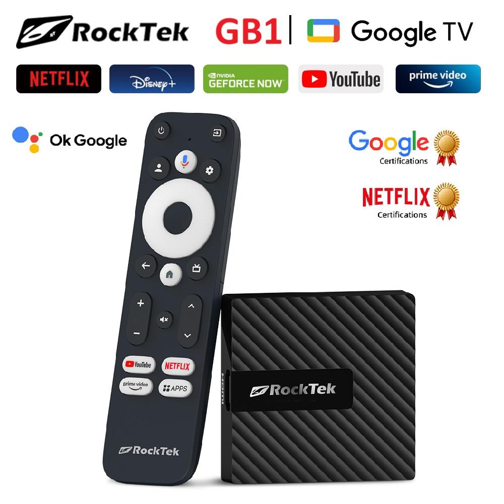 RockTek GB1 Google TV 12 Dongle Netflix & Google Certified 2G 16G DDR4 Realtek1315C Support Dolby Atmos Vision 2T2R Wifi Mini Box