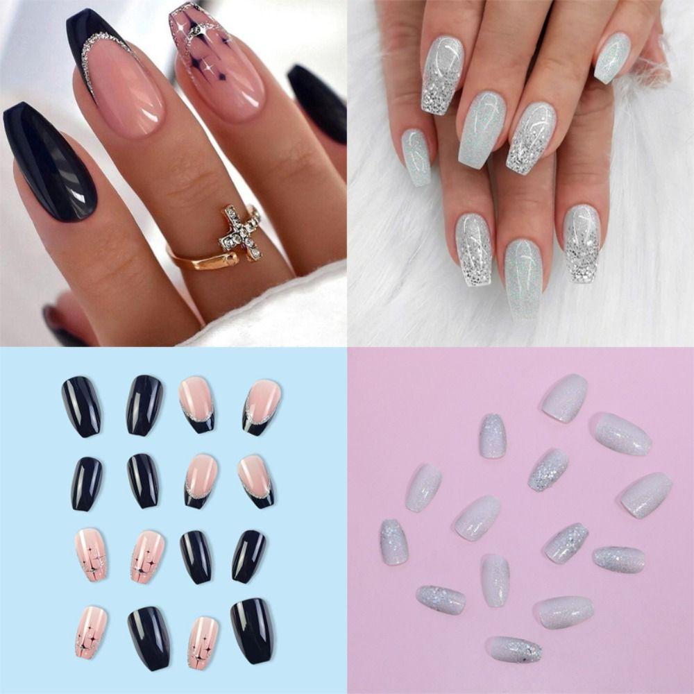Wearable Manicure Coffin Fake Nails Faux Fingernails Nail Tips Fashion Ballerina False Nail Girl