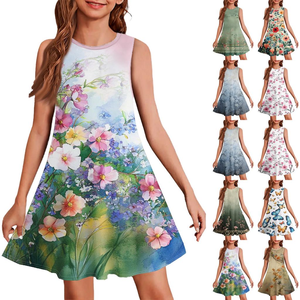 Летнее платье для девочек без рукавов с принтом в цвете, повседневное платье — купить товар онлайн с бесплатной доставкой до всему миру!
