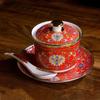 Эмалированный красный керамический обеденный сервиз Тарелки и блюда Китайские старинные тарелки и миски Бытовая посуда Поднос для сервировки столовой