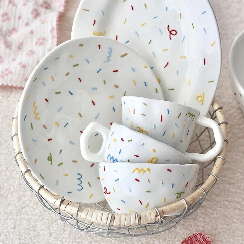 Ручные нестандартные керамические обеденные тарелки Nordic Modern с тиснением в виде кремовой кофейной чашки Home Подглазурные цветные тарелки для торта и десерта