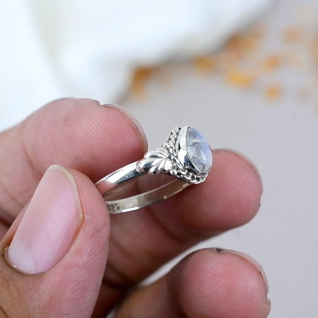 Кольцо ручной работы с радужным лунным камнем в стиле бохо из стерлингового серебра 925 пробы с драгоценными камнями в форме груши для женщин