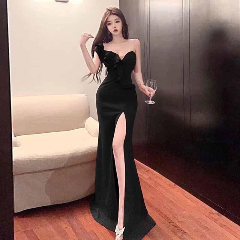 Женское платье-платье с разрезом на плече и разрезом в стиле знаменитости — купить товар онлайн с бесплатной доставкой до всему миру!