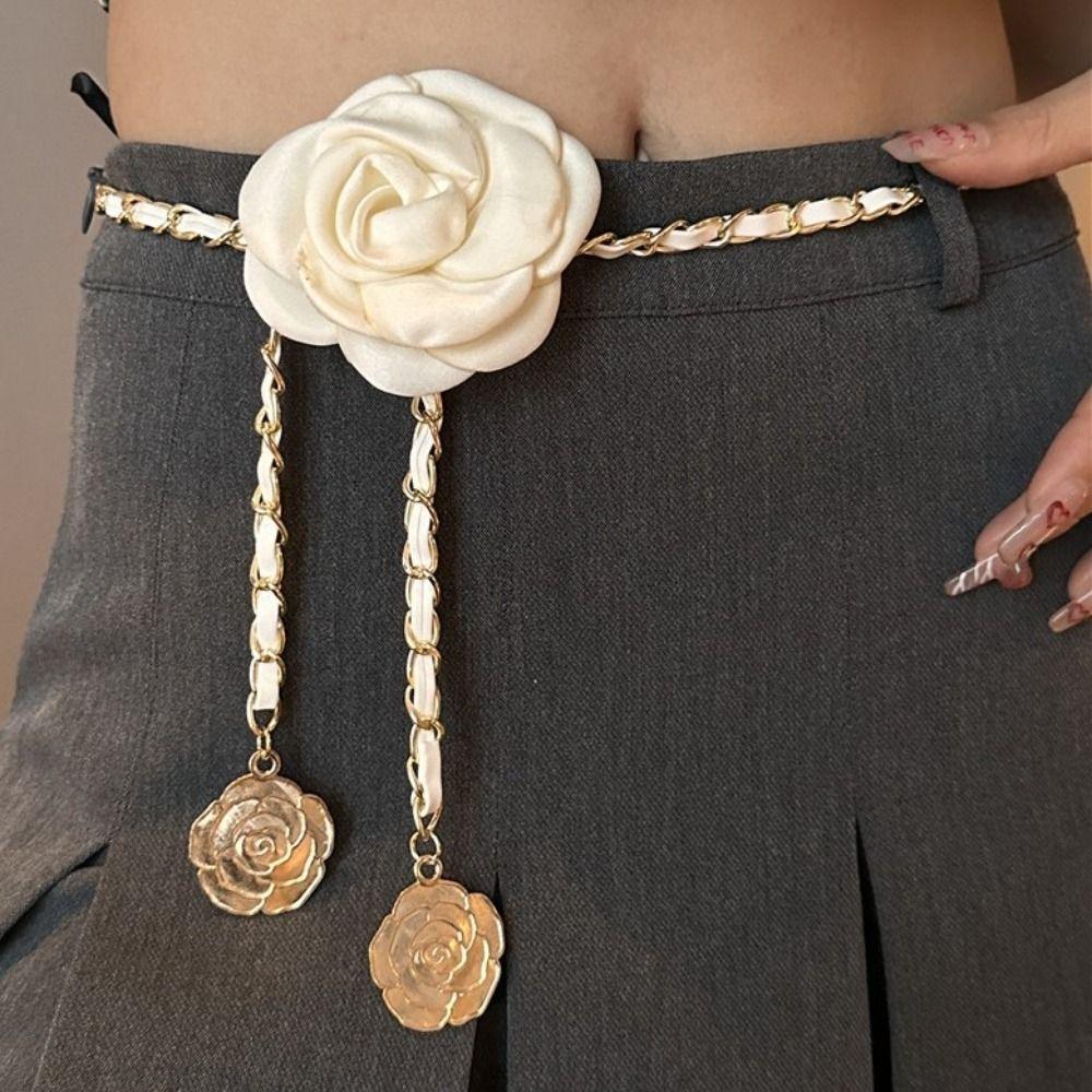 Женская цепочка на талию с камелией, украшение на талию, металлическая цепочка, пояс для женского платья, поясная цепочка