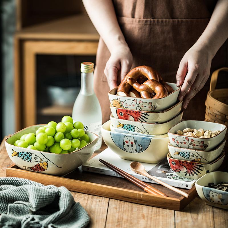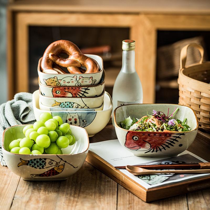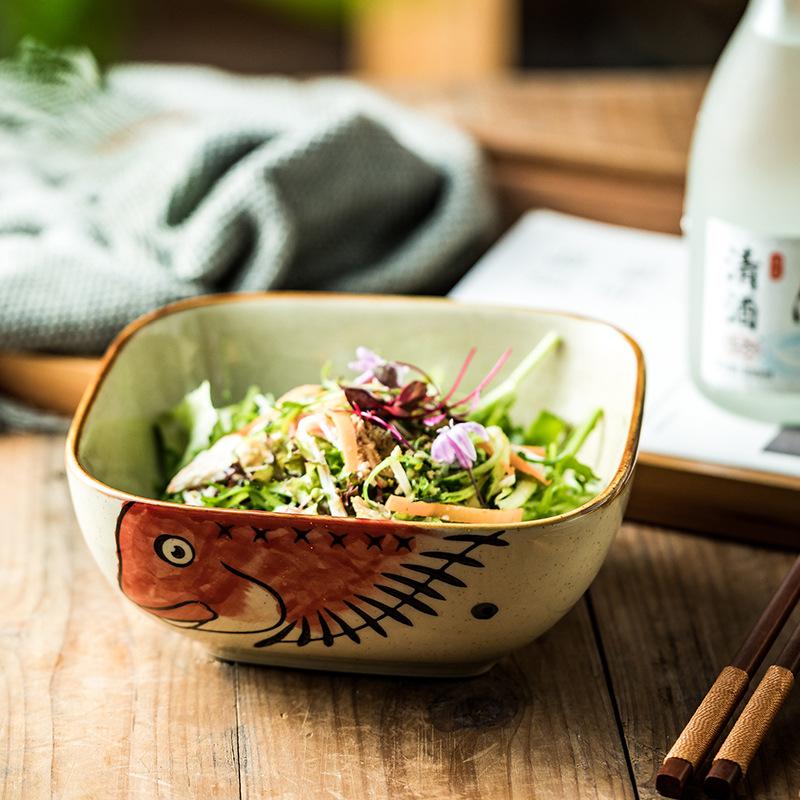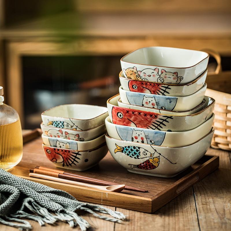 Квадратная миска в японском стиле для домашнего использования, суповая миска для риса, керамическая посуда для ресторана, салатница в стиле ретро