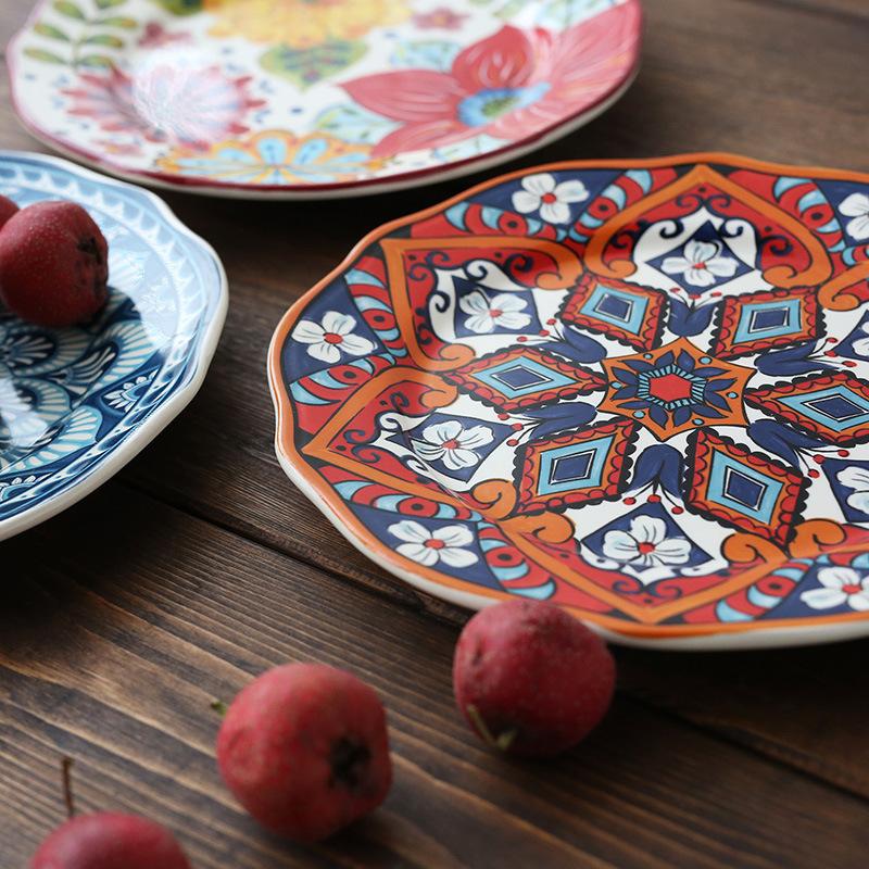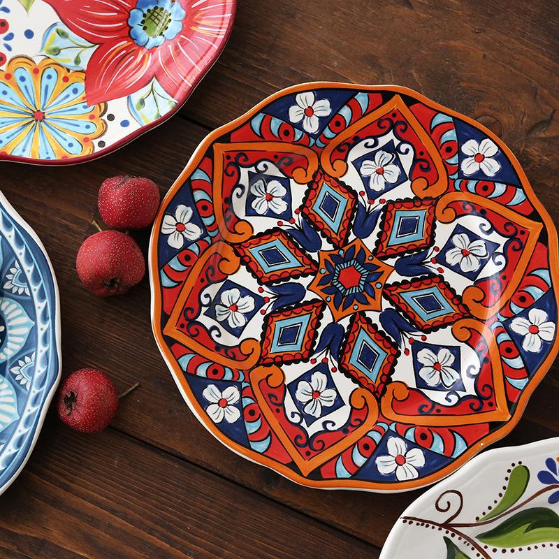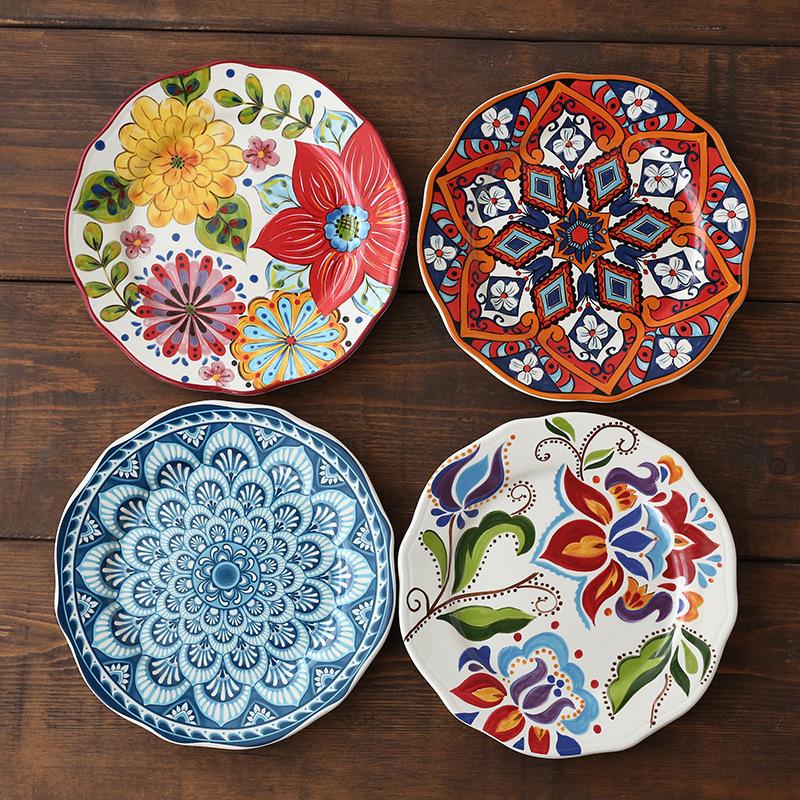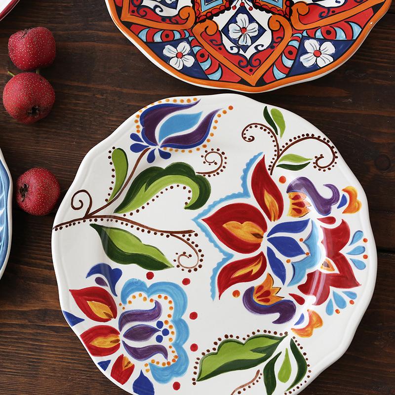 Расписанная вручную керамическая посуда для дома, японская, американская плоская тарелка, деревенский этнический стиль, для стейков, западная, круглый поднос