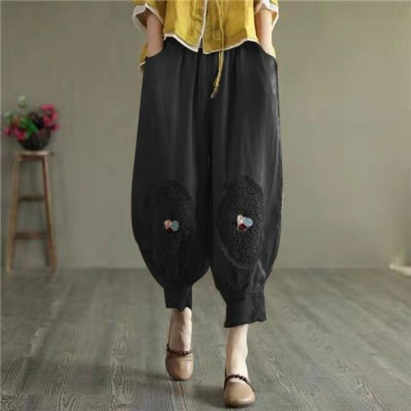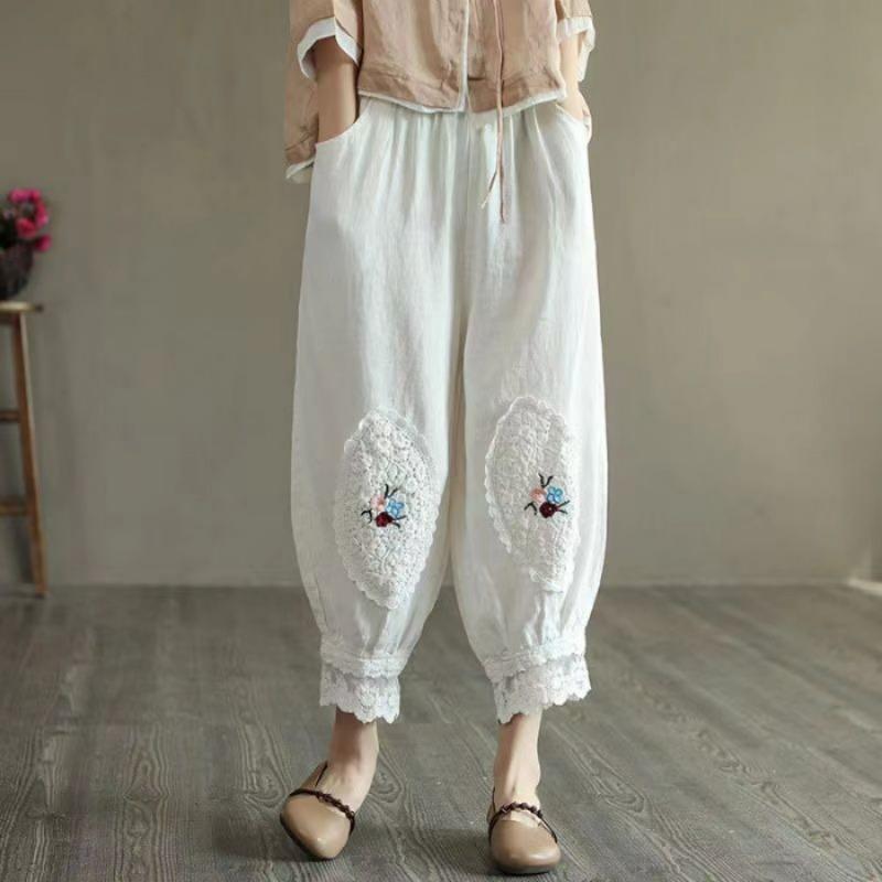 Женские брюки Повседневные шаровары Летние винтажные шаровары с вышитыми цветами Длина до щиколотки Брюки-фонарики