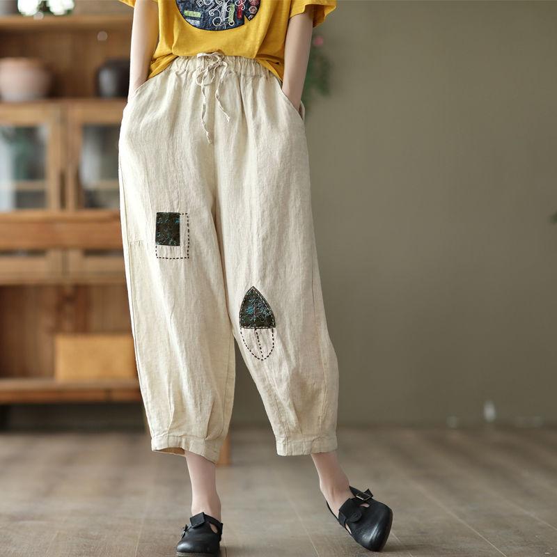 Летние ретро-художественный стиль, повседневные минималистичные модные свободные брюки оверсайз с высокой талией, на шнуровке и вышивкой, с капюшоном и редисом — купить товар онлайн с бесплатной доставкой по всему миру!