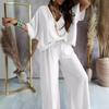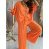 Комплекты с длинными брюками, летний комплект из двух предметов для женщин, с v-образным вырезом и рукавами «летучая мышь», повседневные свободные широкие брюки, комплект из 2 предметов, однотонная одежда