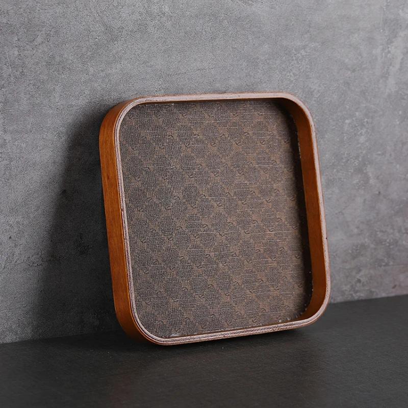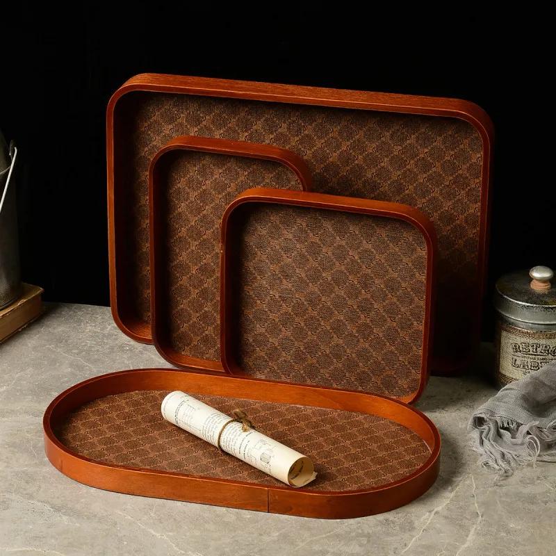 Легкий роскошный кожаный китайский чайный поднос, ретро настольный ювелирный ключ, место для хранения при входе, высококачественный деревянный поднос