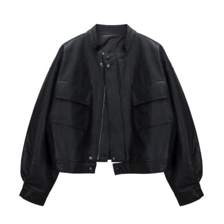 Модная женская короткая кожаная куртка в корейском стиле с воротником-стойкой, весенне-осенняя мотоциклетная куртка, повседневный тренд в гонконгском стиле