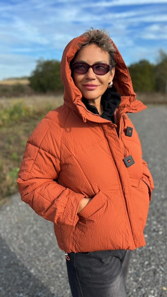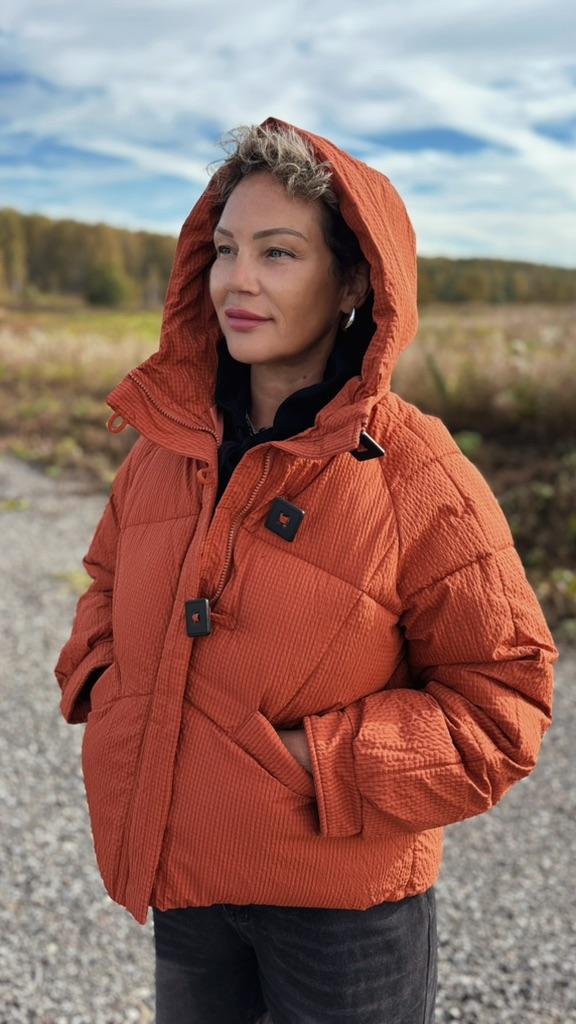 Куртка цвета «терракот» 📌Четыре цвета на выбор Размеры М- 2XL Мои параметры: 167, 98-85-100 На мне размер 2XL 📌Фасон: Рукав реглан Манжеты без резинки, застегиваются на кнопки Тип застежки- молния , она пластиковая, бегунок металлический Молния закрыта планкой, планка застегивается на крупные пуговицы Есть карманы, довольно глубокие Капюшон не отстегивается Внизу фиксаторы с утяжками, чтобы сделать куртку короче 📌Ткань: Ребристая, в выпуклый мелкий квадратик Ткань плотная, ветер не пропускает Наполнитель синтепон, распределен равномерно 📌Сезон: межсезонье, еврозима 📌Впечатления: Понравилась. Удобная, смотрится стильно, теплая, но легкая Пошив фабричный 📐Замеры: Плечи нет Длина рукава от горловины 72 Ширина 14 ОГ подмышками 120 ОТ 124 ОБ 126 Длина 62