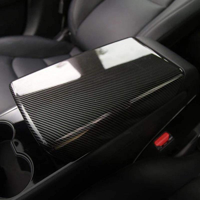 Крышка центральной консоли подлокотника из углеродного черного цвета для Tesla Model 3 2017-2024, автомобильный подлокотник, крышки мусорного ящика