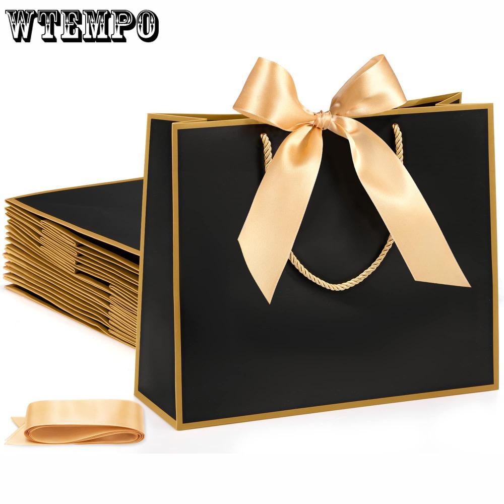 6 шт. элегантных подарочных пакетов с ручками и бантом из ленты, бумажные пакеты-тоут, подарочные упаковочные пакеты для свадеб, подружек невесты, дней рождения, новоселья