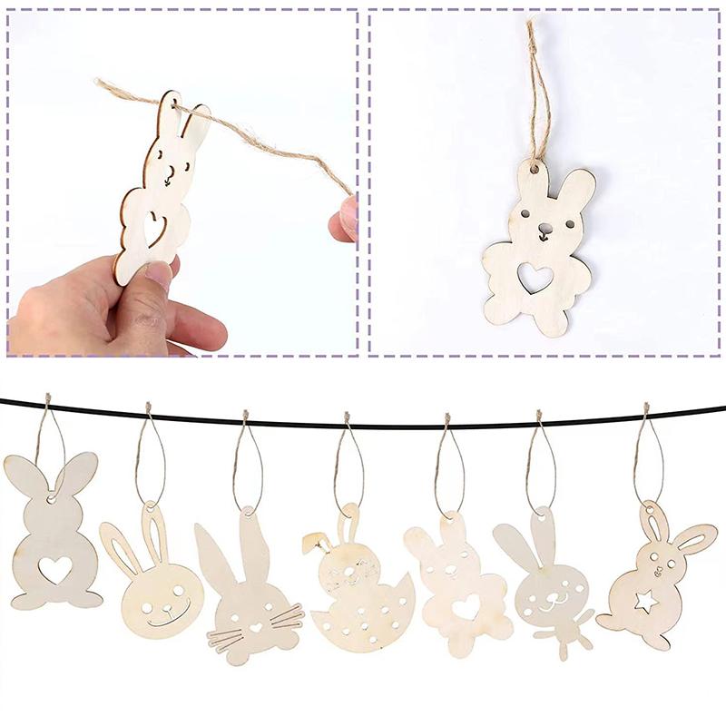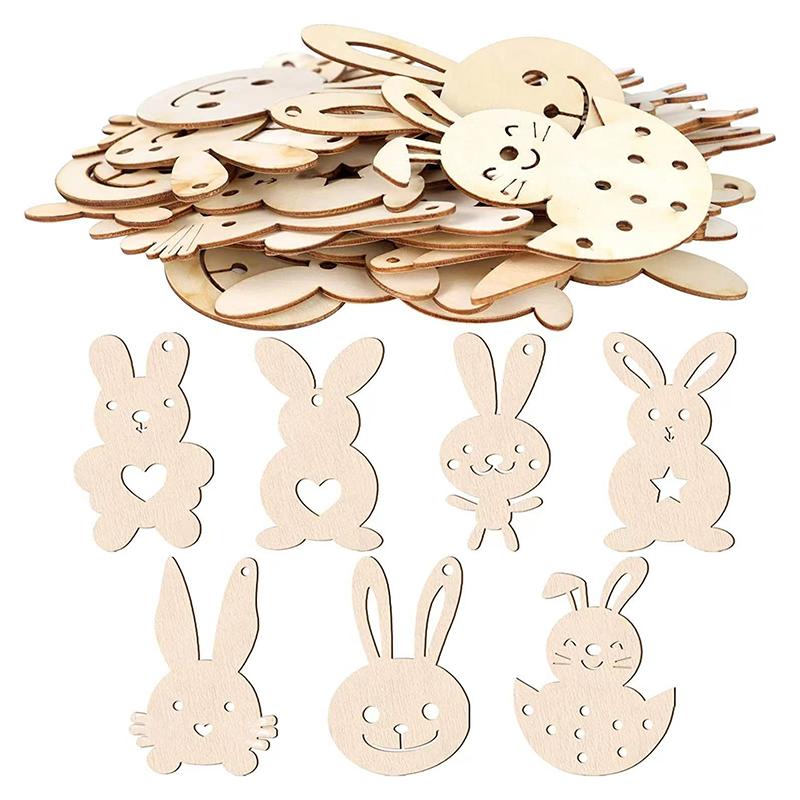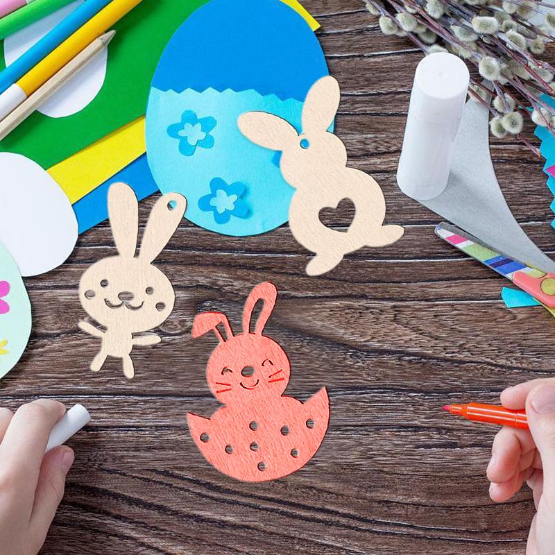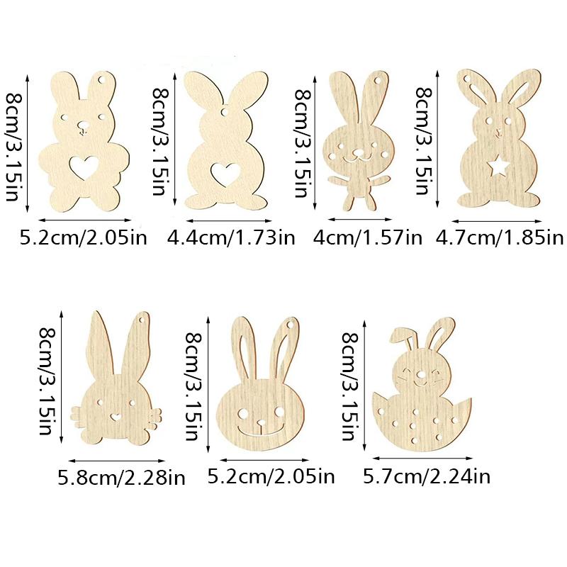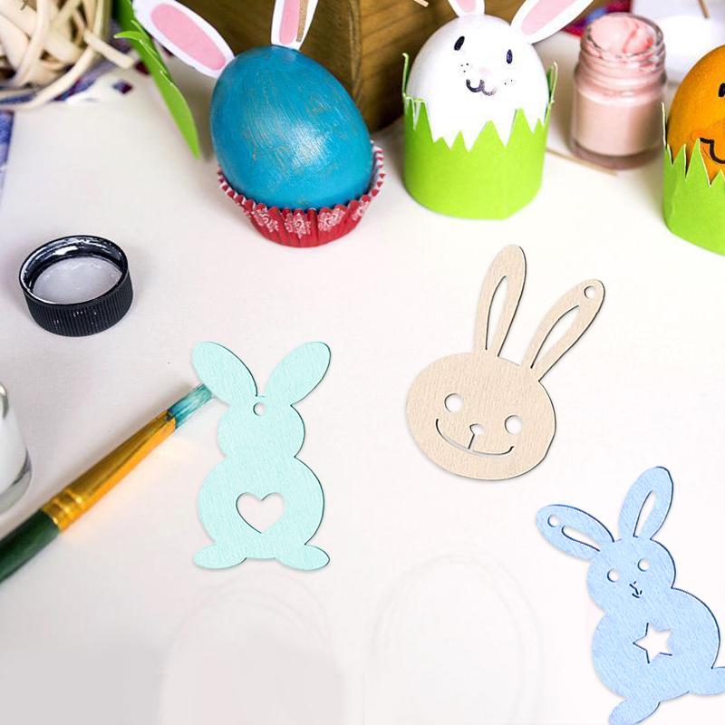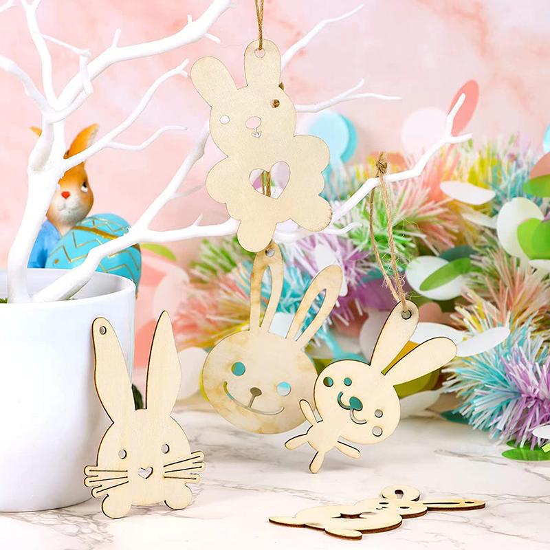 10 шт. пасхальных деревянных вырезок в виде кролика, набор пустых бирок для поделок, набор самодельных художественных изделий в форме кролика, подвесное украшение, 7 стилей