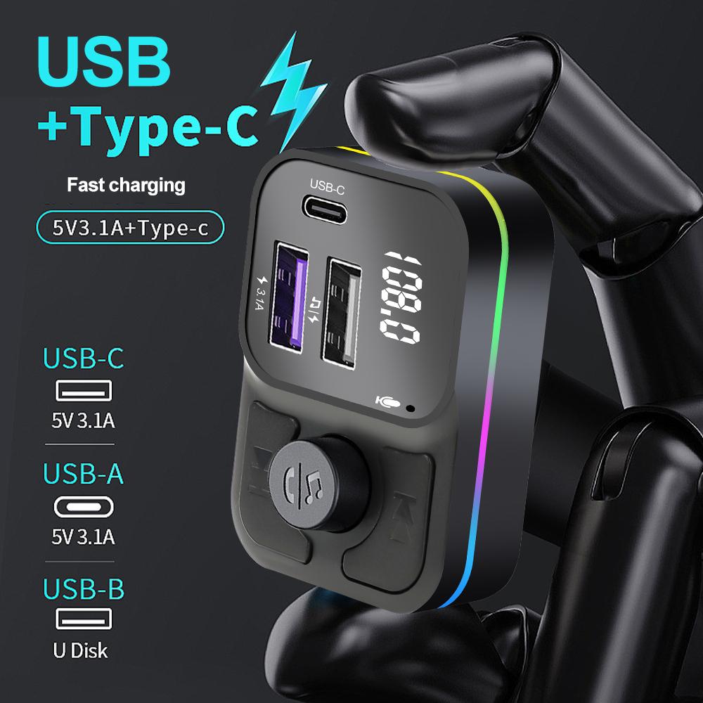 Bluetooth 5.0 Автомобильный FM-передатчик с регулировкой на 180 градусов, двухканальный USB-плеер, зарядное устройство для Mp3, беспроводной светильник Type-C, громкая связь