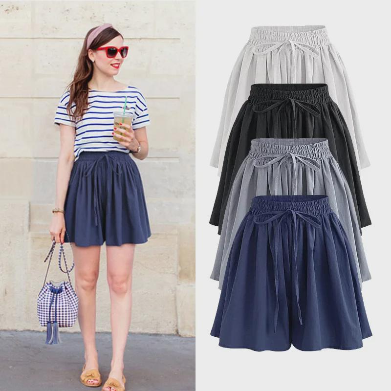 Женские широкие шифоновые шорты больших размеров - Летние повседневные шорты с эластичной резинкой на талии в корейском стиле