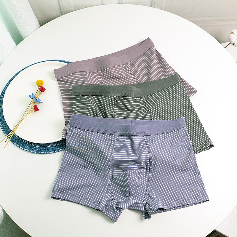 Мужские дышащие трусы-боксеры из хлопка и модала в полоску, средняя посадка, модный стиль