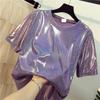 Летнее блестящее шелковое платье-футболка BF с короткими рукавами и блестками 2020 года