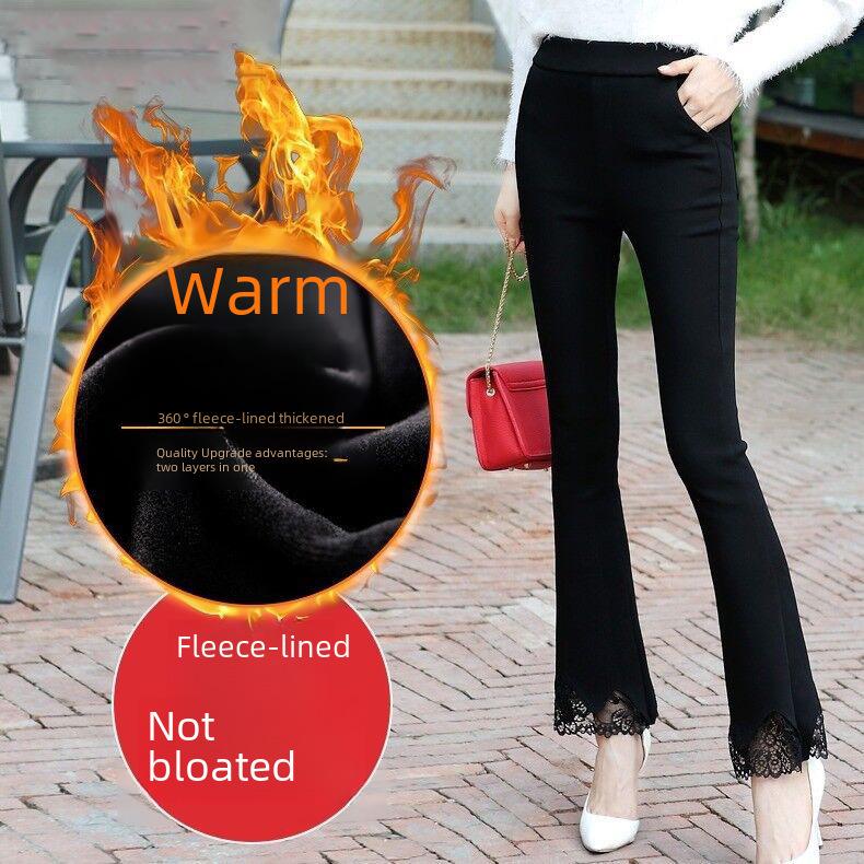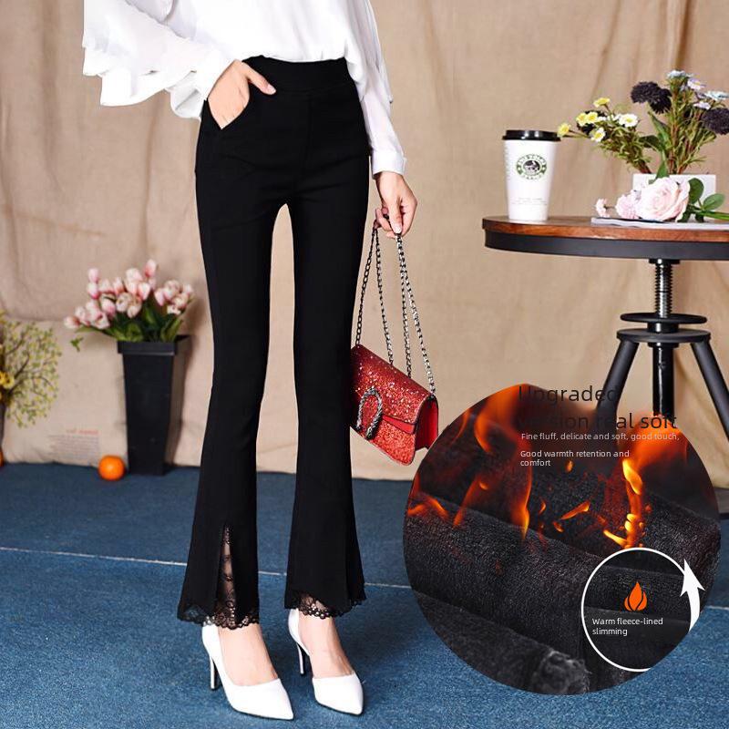 Женские кружевные расклешенные брюки с высокой талией и карманами
