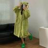 Уютная бархатная ночная рубашка с капюшоном и рисунком больших глаз - женская зимняя пижама свободного кроя из кораллового флиса 2024 года для пар