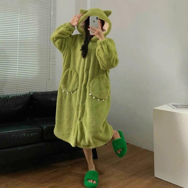 Уютная бархатная ночная рубашка с капюшоном и рисунком больших глаз - женская зимняя пижама свободного кроя из кораллового флиса 2024 года для пар — купить товар онлайн с бесплатной доставкой по всему миру!