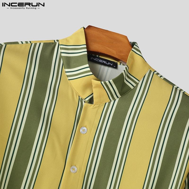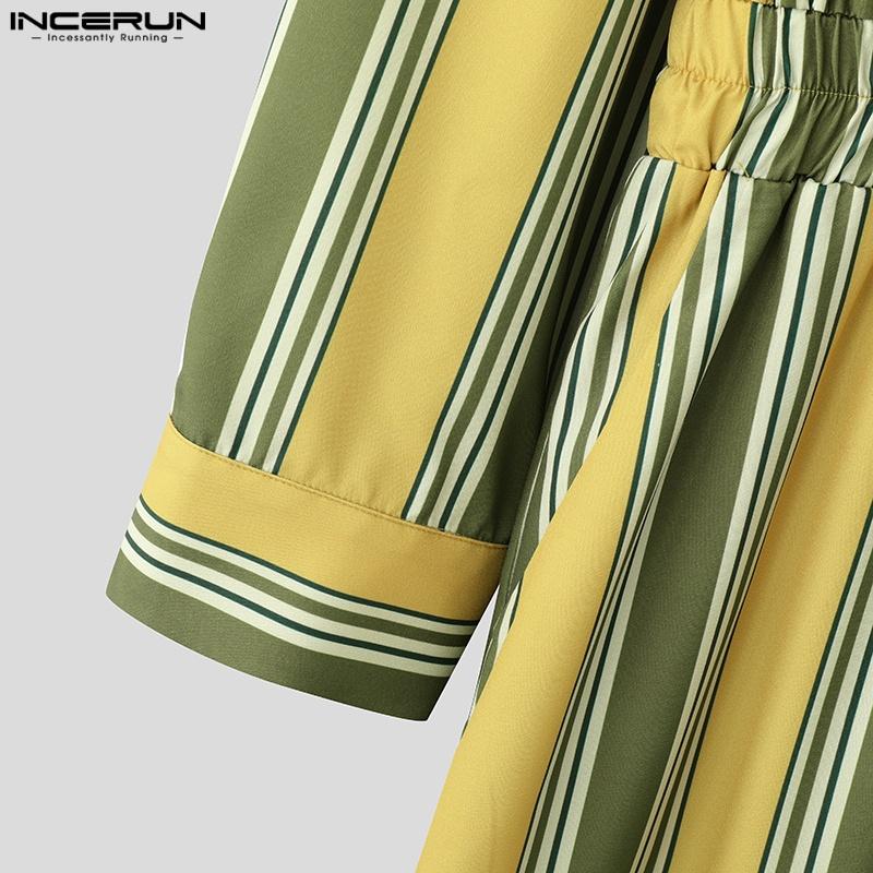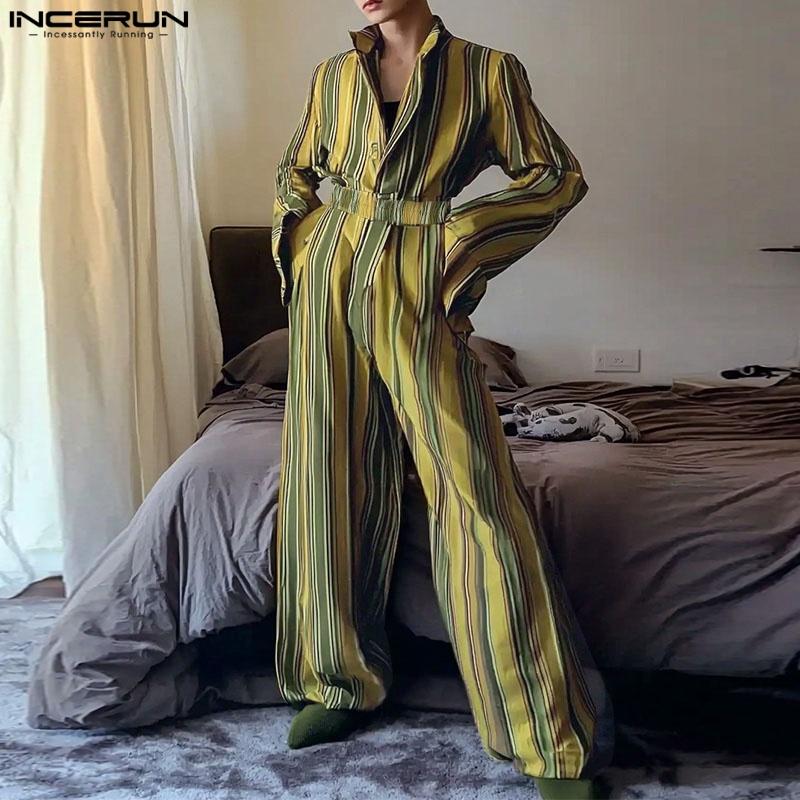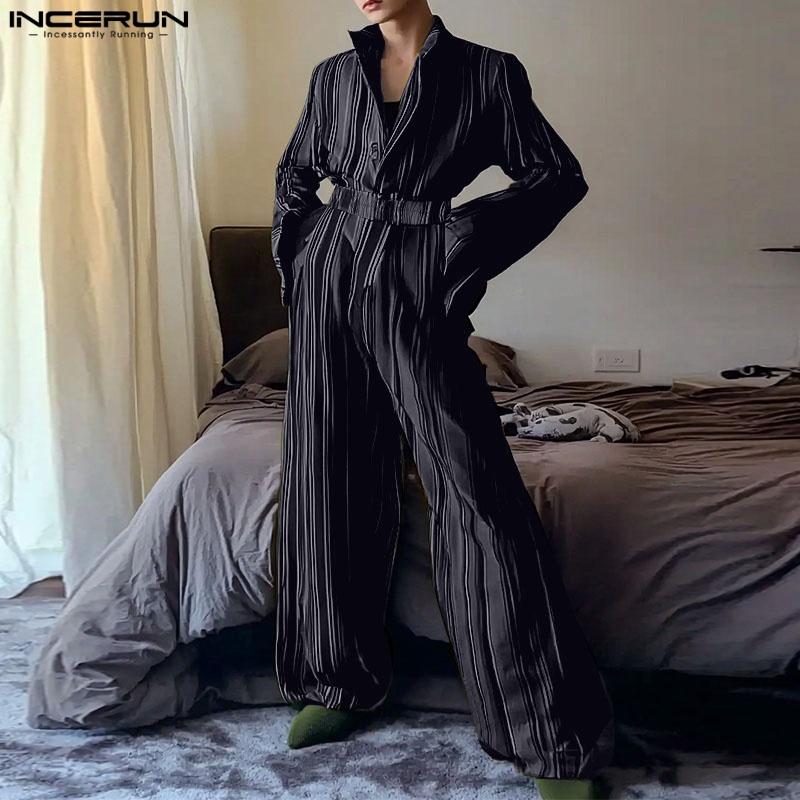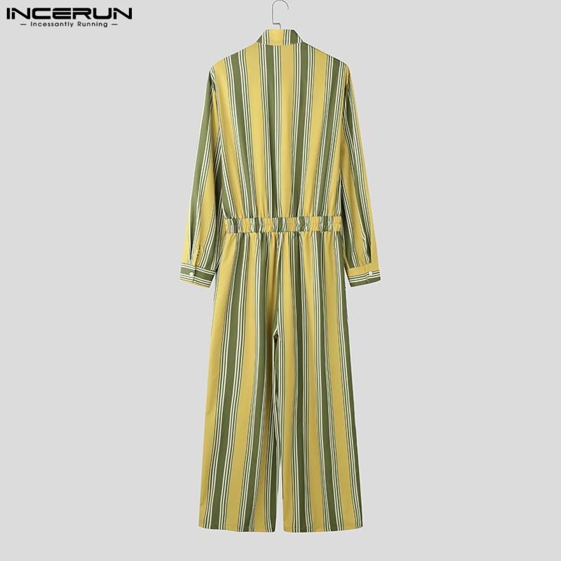 INCERUN Мужские комбинезоны с длинным рукавом и эластичной талией в полоску с длинными рукавами