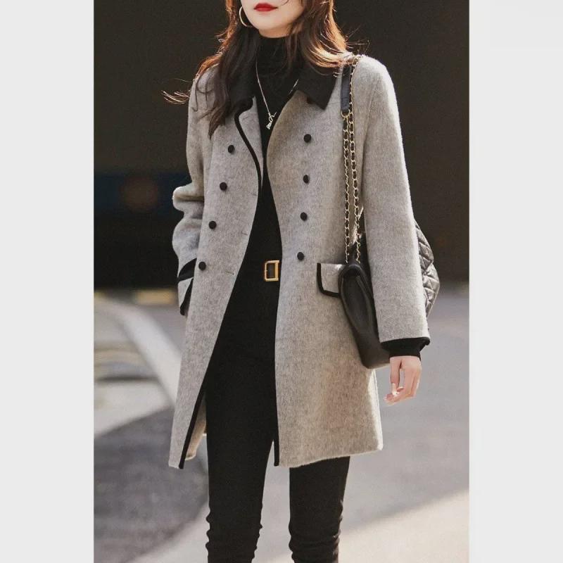 Двустороннее шерстяное пальто цвета хрустящей кости с небольшими лацканами - коллекция осень/зима 2024 г.
