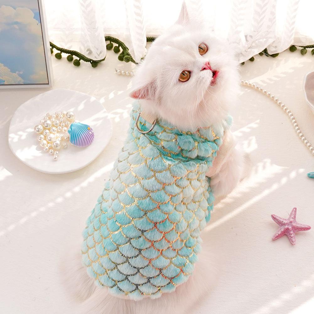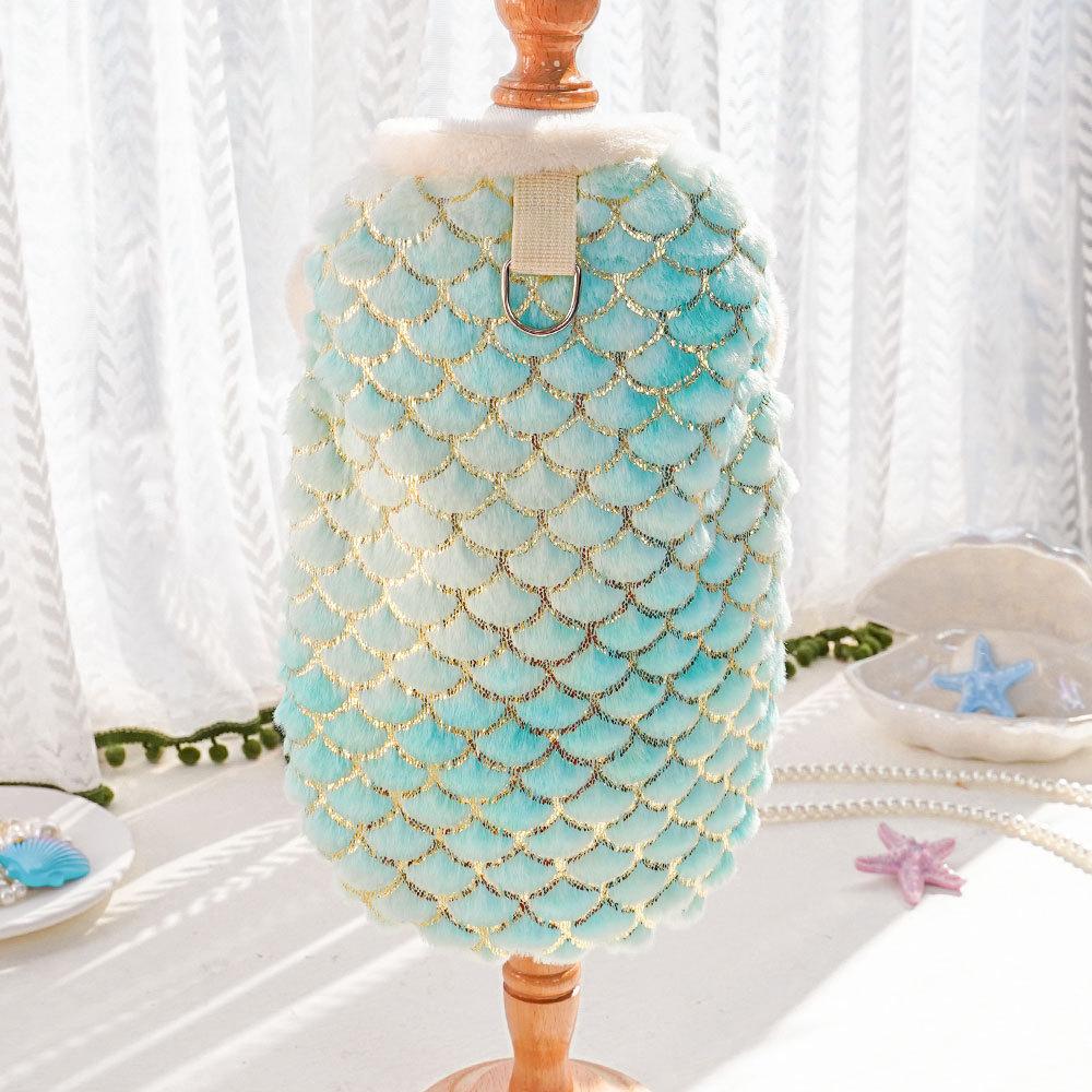 Dog cat clothes autumn and winter warm flannel mermaid bipod medium and small dog pet supplies