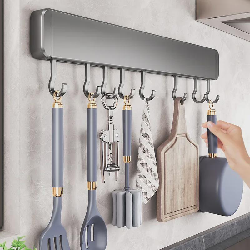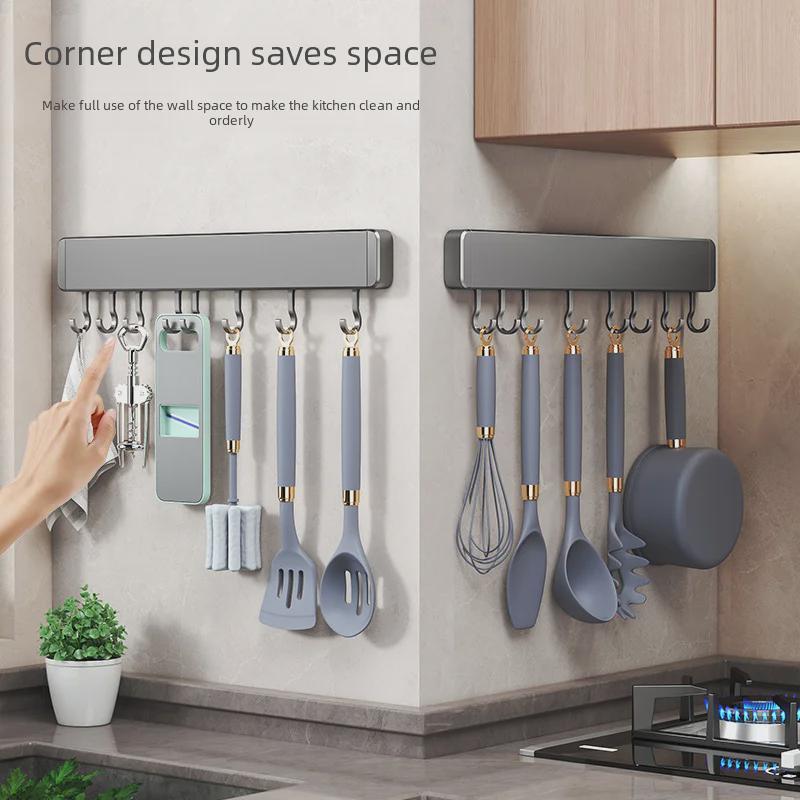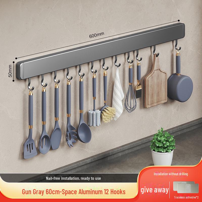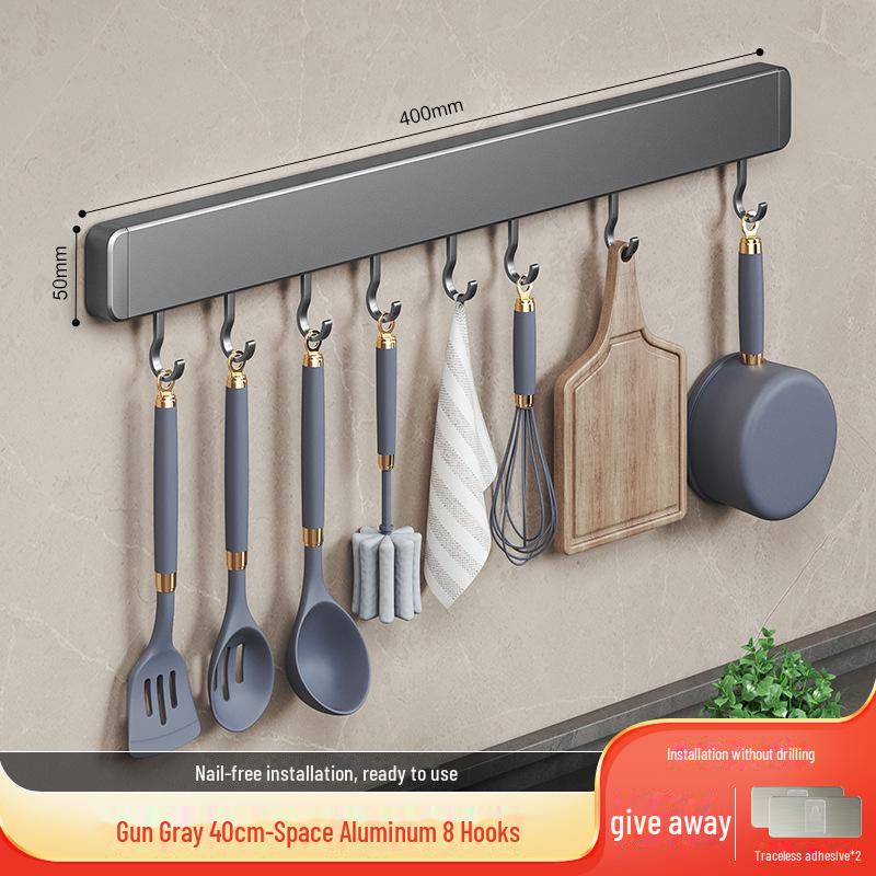 Бесшовная кухонная вешалка для крючков: Алюминиевая подвесная штанга Punch-Free Space для лопатки и ложки