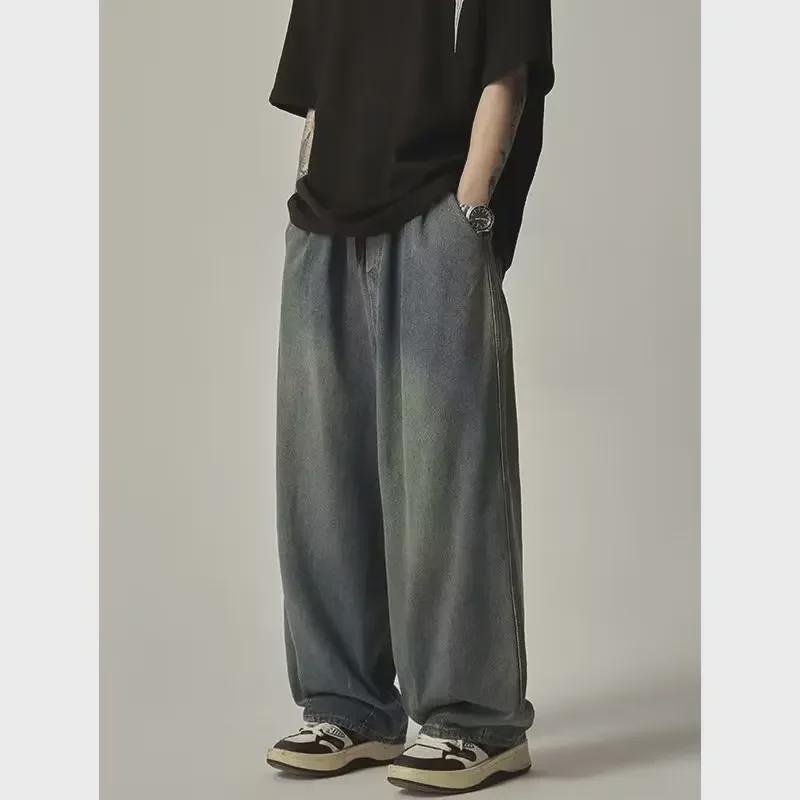 Джинсы унисекс в японском стиле, свободные, широкие, с эластичной талией — купить товар онлайн с бесплатной доставкой до всему миру!