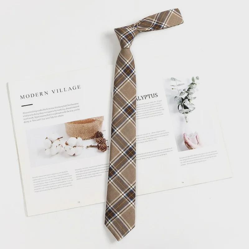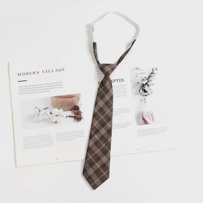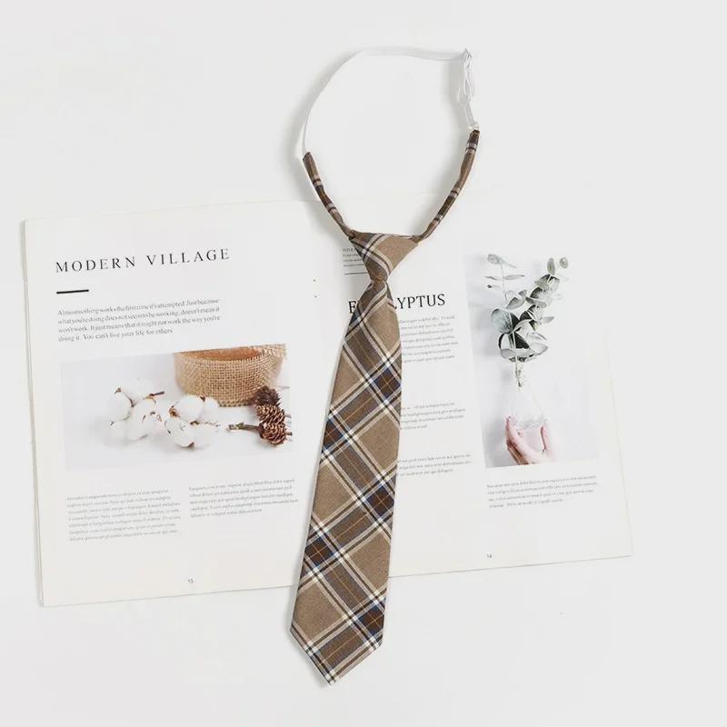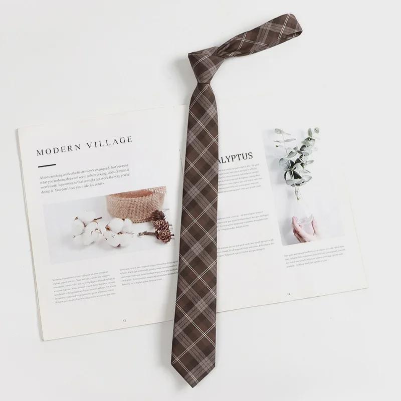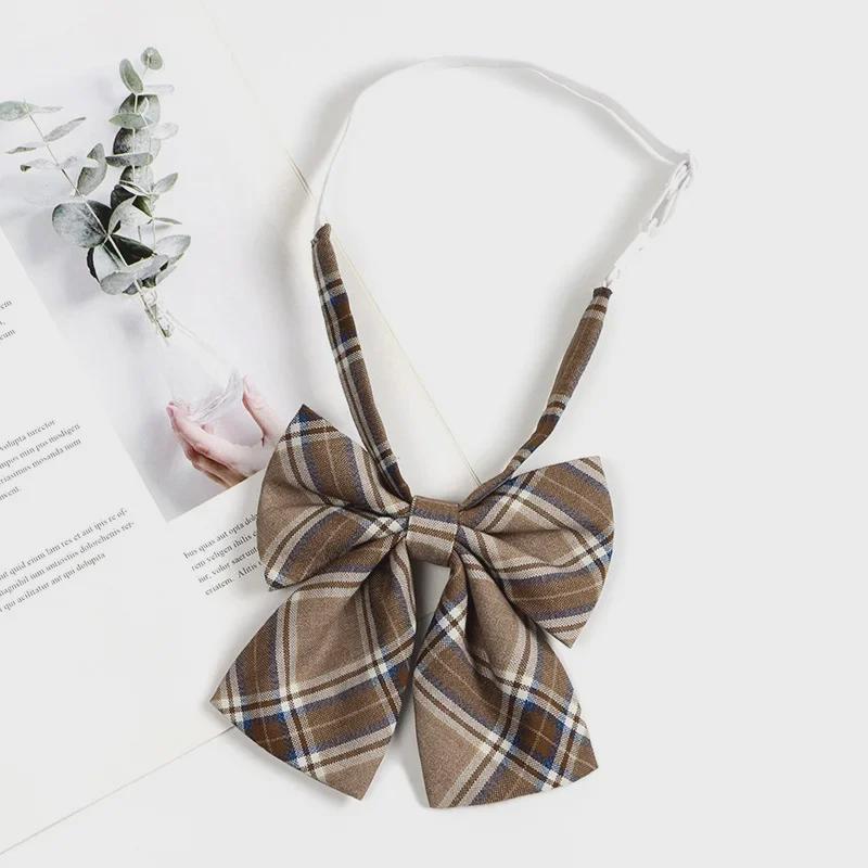 Коричневый клетчатый галстук в стиле ретро для женщин и мужчин - галстук-бабочка в японском стиле для колледжа