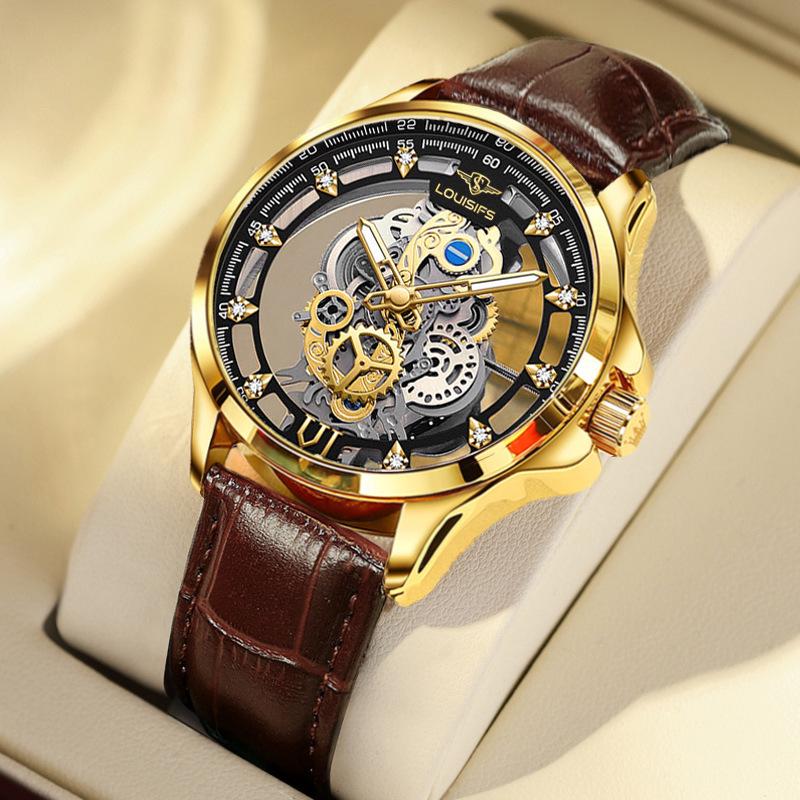 2023 Двусторонние автоматические часы-скелетоны для мужчин в деловом стиле — водонепроницаемые, светящиеся