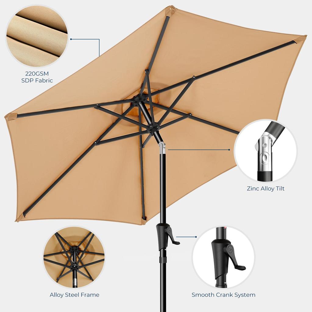 Зонт для патио HY11 UPF50+ 500H 7,5 футов, устойчивый к выцветанию, 6 рамок для зонта