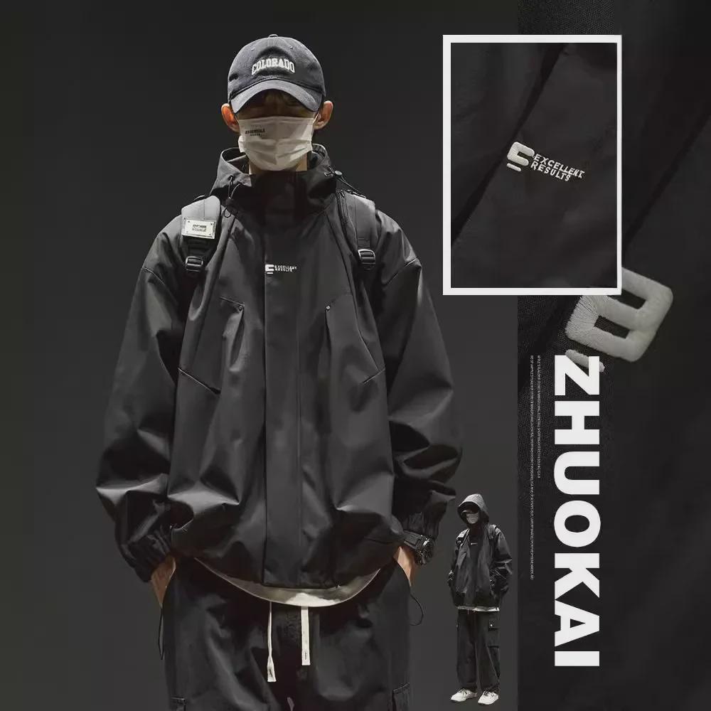Мужская куртка свободного покроя в стиле ретро с однотонным капюшоном — модная, функциональная и унисекс — купить товар онлайн с бесплатной доставкой по всему миру!
