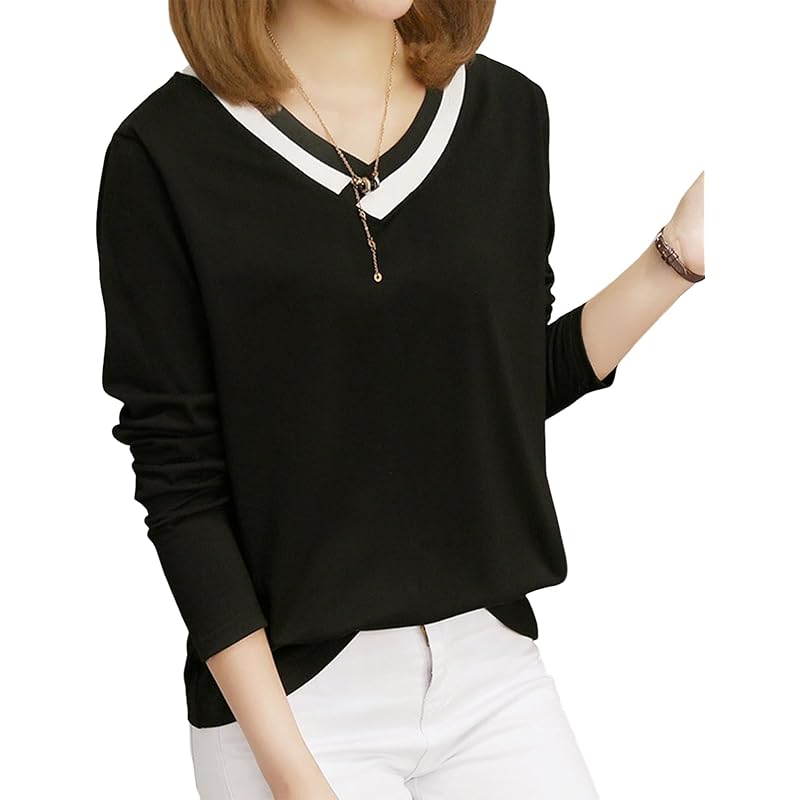 ✨[Функциональность и цвет] Эту классическую базовую футболку легко надевать и она дополнит ваш образ. ◎ V-образный вырез красиво подчеркивает линию декольте, поэтому она отлично смотрится с аксессуарами. ♪ Цвета доступны в популярных цветах: белом и черном. ♪ Пожалуйста, выберите свой любимый цвет в зависимости от случая. ◎