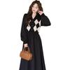 2024 Осень/Зима Японское клетчатое платье-халат с разрезом для зрелых женщин